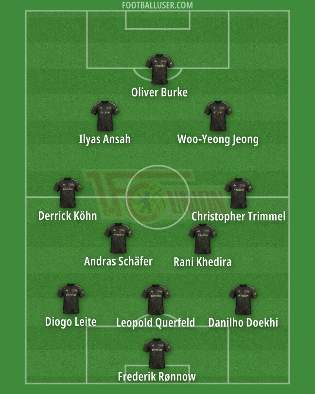 Frederik Rønnow (7) – Diogo Leite (7), Leopold Querfeld (8), Danilho Doekhi (6) – Derrick Köhn (4) Andras Schäfer (5) Rani Khedira (6) Christoph Trimmel (6) – Ilyas Ansah (6), Woo-Yeong Jeong (7) – Oliver Burke (6)