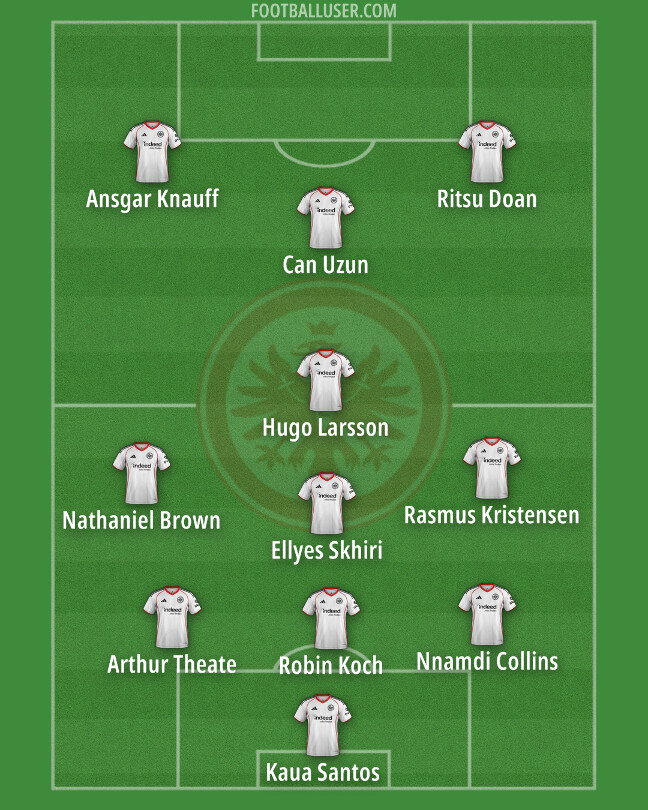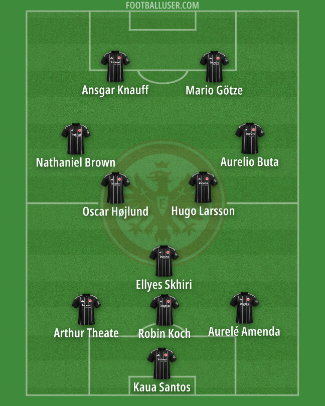 They went with a 4-4-2 this time. Six personnel changes – Aurelio Buta, Mario Götze, Theate, Højlund, Larsson, and Knauff for Collins, Kristensen, Chaïbi, Doan, Uzun, and Kalimuendo – brought us to the end of this interim regime. Schmitt literally had nothing to lose with all these rotations. Here comes the classic case of throwing something to the wall to see if it sticks.