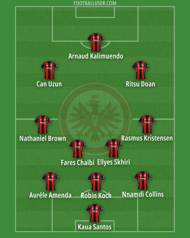 Back in the Bundesliga, there were once again three changes to the previous XI. This time Kalimuendo, Auréle Amenda, Kalimuendo, and Chaïbi started in place of Arthur Theate, Larsson, and Knauff. Schmitt and Meier stuck with the 3-4-3 again, naturally not running the false-nine this time with their non-UCL-registered striker once again available.